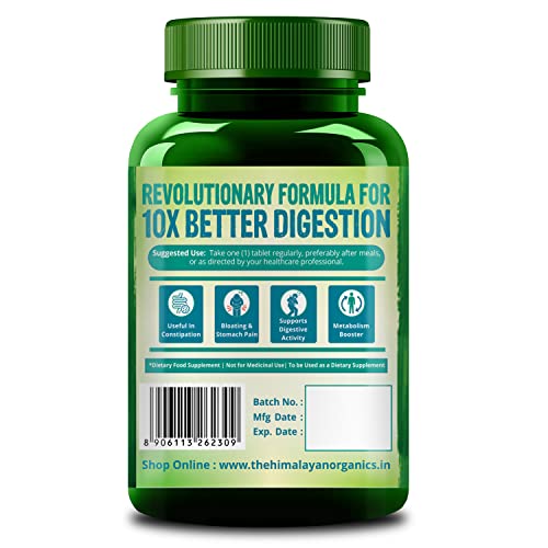 1 TABLET DAILY FOR SMOOTH DIGESTION: Himalayan Organics Digestive Enzyme can be taken to relieve digestion problems effectively. It contains a range of digestive enzymes that enhance digestion efficiency along with decreasing fatigue to keep you refreshed throughout the day.