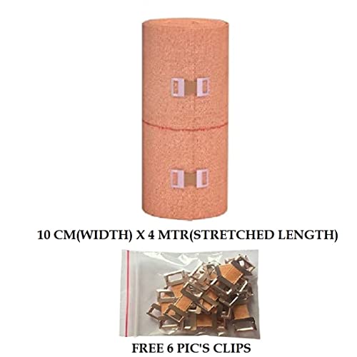 MY ARMOR Cotton Crepe Bandage for Pain Relief, 15cm x 4mt Tape for Injury & Muscle Compression with 4 Extra Clips, Pack of 2