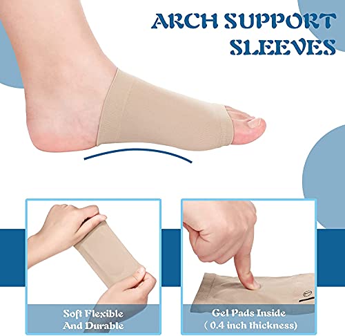 Effective arch support sleeves made of silk, stretchy reusable spandex fabric with soft SEBS cushions absorbing shock hand- washable for all-day use..