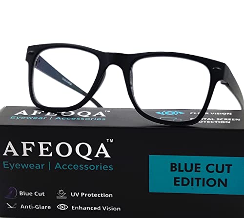 AFEOQA™ Premium Blue Light Filter Computer Glasses in Square Frame for Eye Protection (Medium | Black)