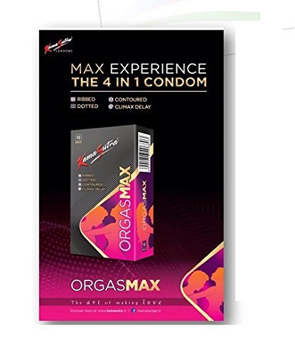 Kamasutra Orgasmax comes with a unique set of 4-in-1 features- dots, ribs, contours and climax delay. The condoms are designed to speed her up and slow him down, with high lubrication and natural latex. With a girth of 6 cm and length of 12 cm, the condoms provide a better fit to fortify pleasure and sensation between you and your partner. Each and every condoms are 100% electronically tested for assurance. For maximum benefit, carefully follow the condom instructions inside this package. The package also comes with a disposable bag with Each and every condom for simple disposal. To get the most protection from a latex condom, use one appropriately each time you have sex.